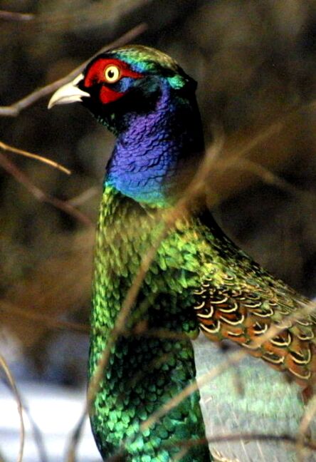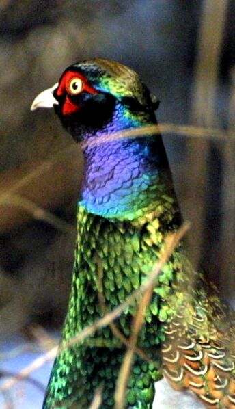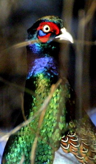 今日の午後、オスのキジが道路端を歩いているのを見つけました。