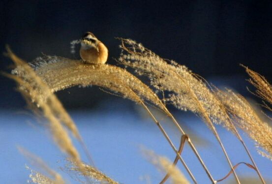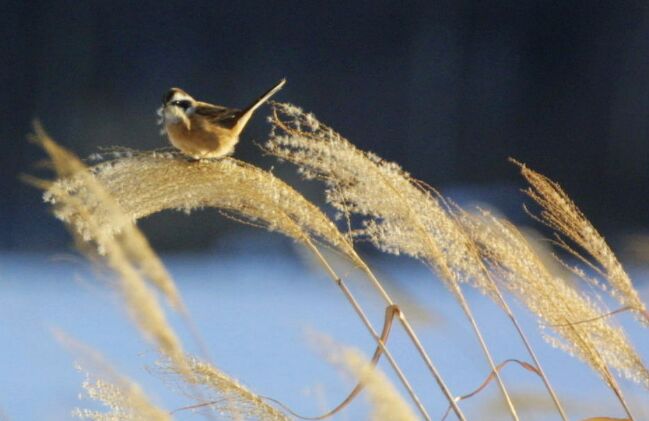 ススキの穂にとまったホオジロを見つけました。高いところから周りを警戒してるのかなと思って見ていたところススキの穂を抜き取り、すいて食べているようなんです。